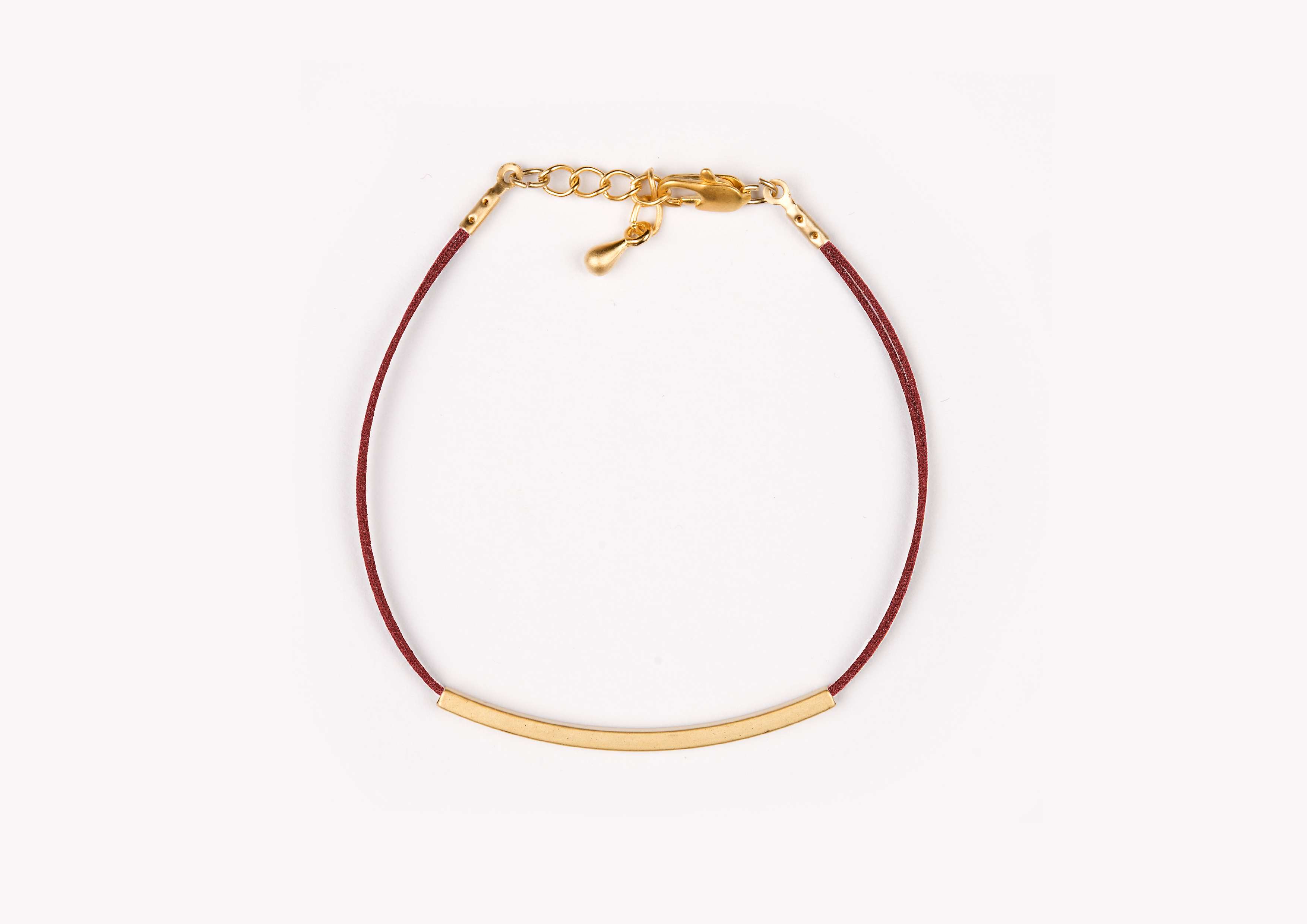 Filigranes Armband aus zwei dünnen Kunststoffbändchen und dekorativem Element in der Mitte.