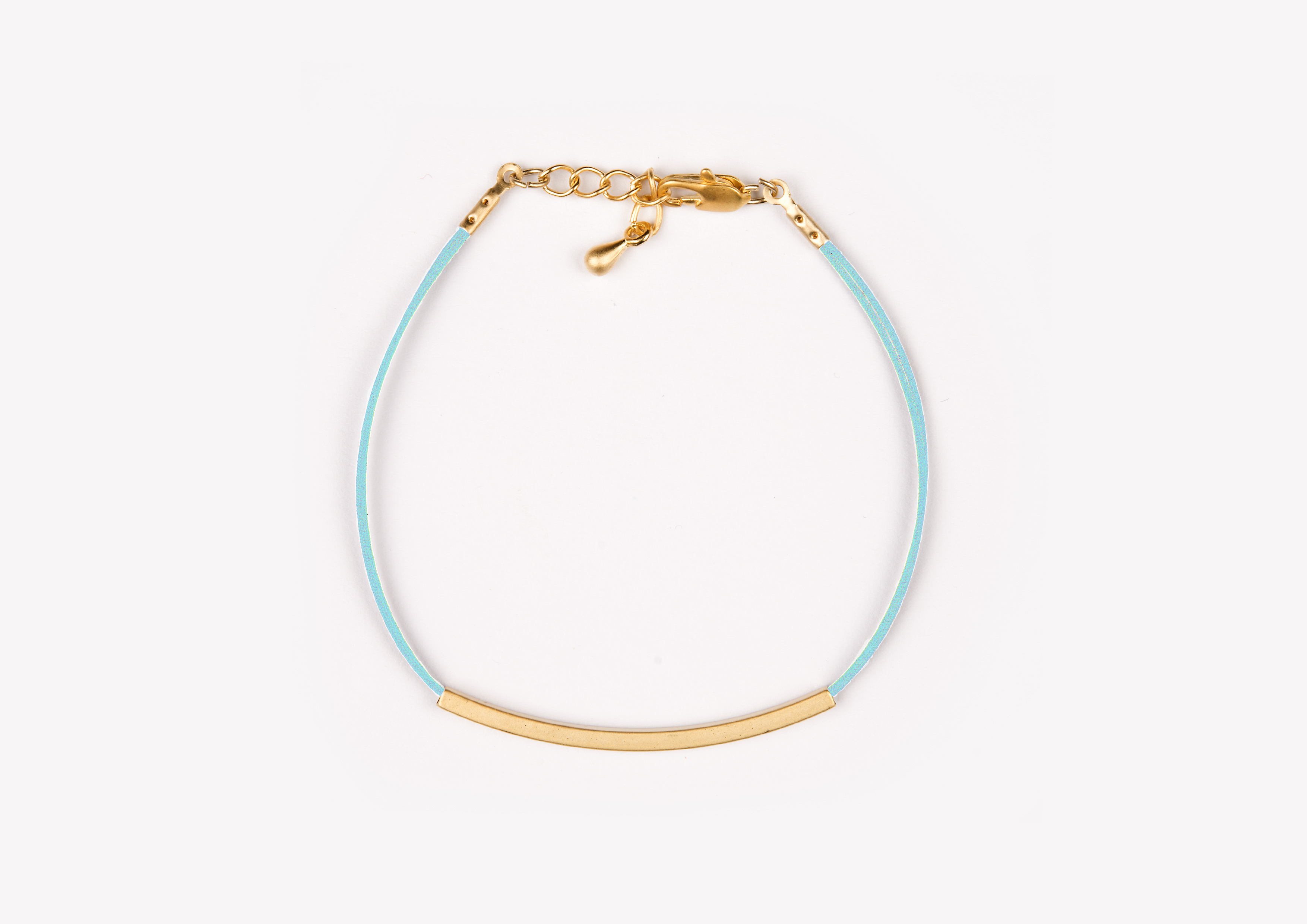Filigranes Armband aus zwei dünnen Kunststoffbändchen und dekorativem Element in der Mitte.
